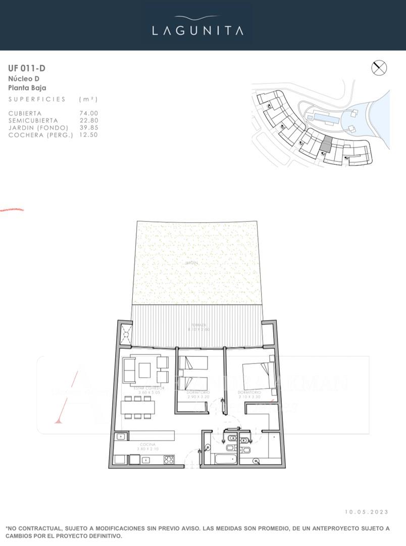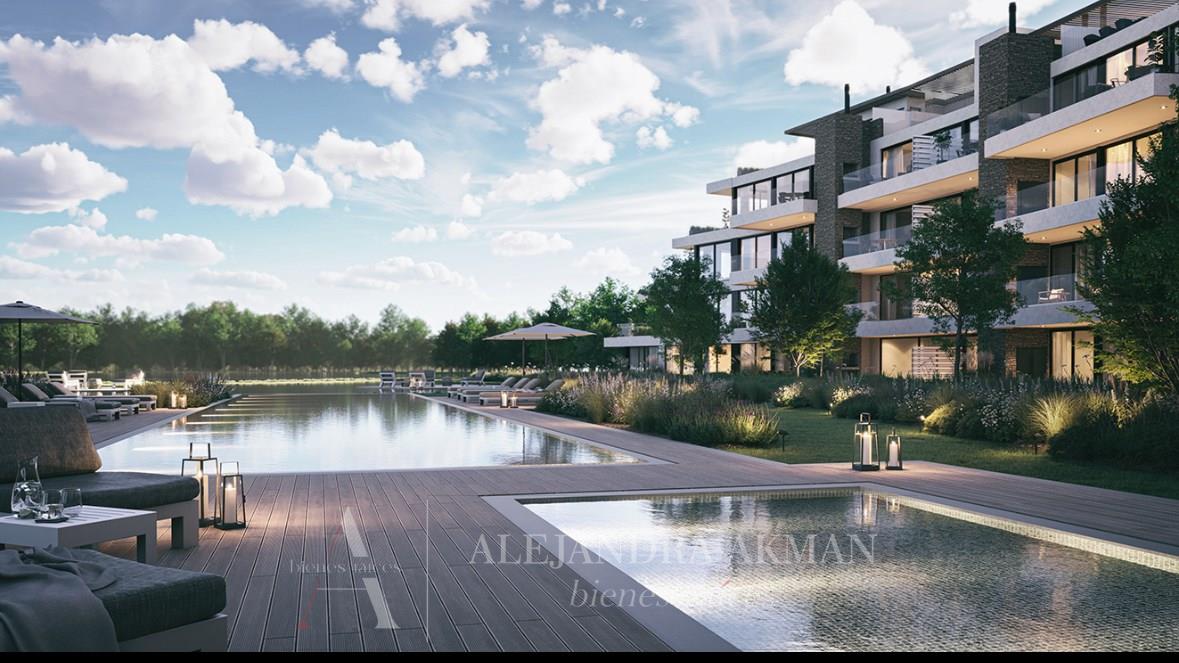 Departamento de 2 ambientes con jardin al fondo a estrenar, entrega 2026, con amenities Lagunita Nordelta. PB con jardin y cochera. Living comedor con cocina integrada con vista al jardin. Toilette. Dormitorio principal en suite con vestidor El complejo cuenta con Parque central forestado de aprox. 1300 m2 incluyendo la pileta de natación de 25 metros de largo y solárium. Además, una expansión propia de la lagunita de aproximadamente 700 m2. . - Edificio curvo con vista a la lagunita. - Parque central diseñado y forestado con especies seleccionadas. - Pileta semiolímpica (25 m) y pileta para chicos.. - Unidades de 2, 3 y 4 ambientes en diversas propuestas. Plantas bajas con jardín propio, y los 3ros pisos con terrazas propias. Hay 16 unidades en Planta Baja con jardín. 21 unidades en Primer piso. 20 unidades en Segundo piso. 23 unidades en el Tercer piso, todas con terraza propia. Unidades de 4 ambientes: 11 Unidades de 3 ambientes: 39 Unidades de 2 ambientes: 30 ¿Cómo son las terminaciones? GENERAL • Piso de Porcelanato o PVC símil madera en interiores. • Preinstalación para Aire Acondicionado. • Carpintería de PVC. • Aberturas con doble vidrio. • Calefacción por piso radiante eléctrico. • Piso de cerámicos en terrazas. • Construcción tradicional estructura de hormigón. • Frentes de placard en unidades. • Artefactos de iluminación en áreas comunes. • Jardines con diseño y parquización. COCINA • Revestimiento en piso y pared. • Muebles de cocina bajo mesada. • Horno eléctrico y anafe vitrocerámico eléctrico. • Mesada de granito o Silestone con bacha de acero inoxidable. • Grifería FV o calidad similar. BAÑO • Revestimiento porcelanato en piso y pared. • Artefactos sanitarios de primera línea. • Grifería FV o calidad similar. LAGUNITA reúne gran parte de las claves de su arquitectura: líneas limpias con formas fluidas y orgánicas, grandes ventanales que logran continuidad interior/exterior y amplios espacios verdes como corazón del Proyecto. Forma de pago: 30% a la adhesión en USD 10% refuerzo 60% en 16 cuotas mensuales en pesos más CAC (puede variar al momento de realizar la consulta) No están incluidos los gastos, honorarios e impuestos para afrontar la subdivisión y escrituración Las superficies y el proyecto están sujetas a cambios hasta la aprobación final del mismo ante los organismos públicos y privados La publicación de este inmueble es a solo título informativo, pues la venta de la propiedad está supeditada a que el propietario cumplimente el trámite ante la Afip para la obtención del Coti correspondiente. Las medidas son aproximadas y están sujetas a la presentación de planos. Todas las Operaciones Inmobiliarias son concluidas por Alejandra Akman CMCPSI 7086