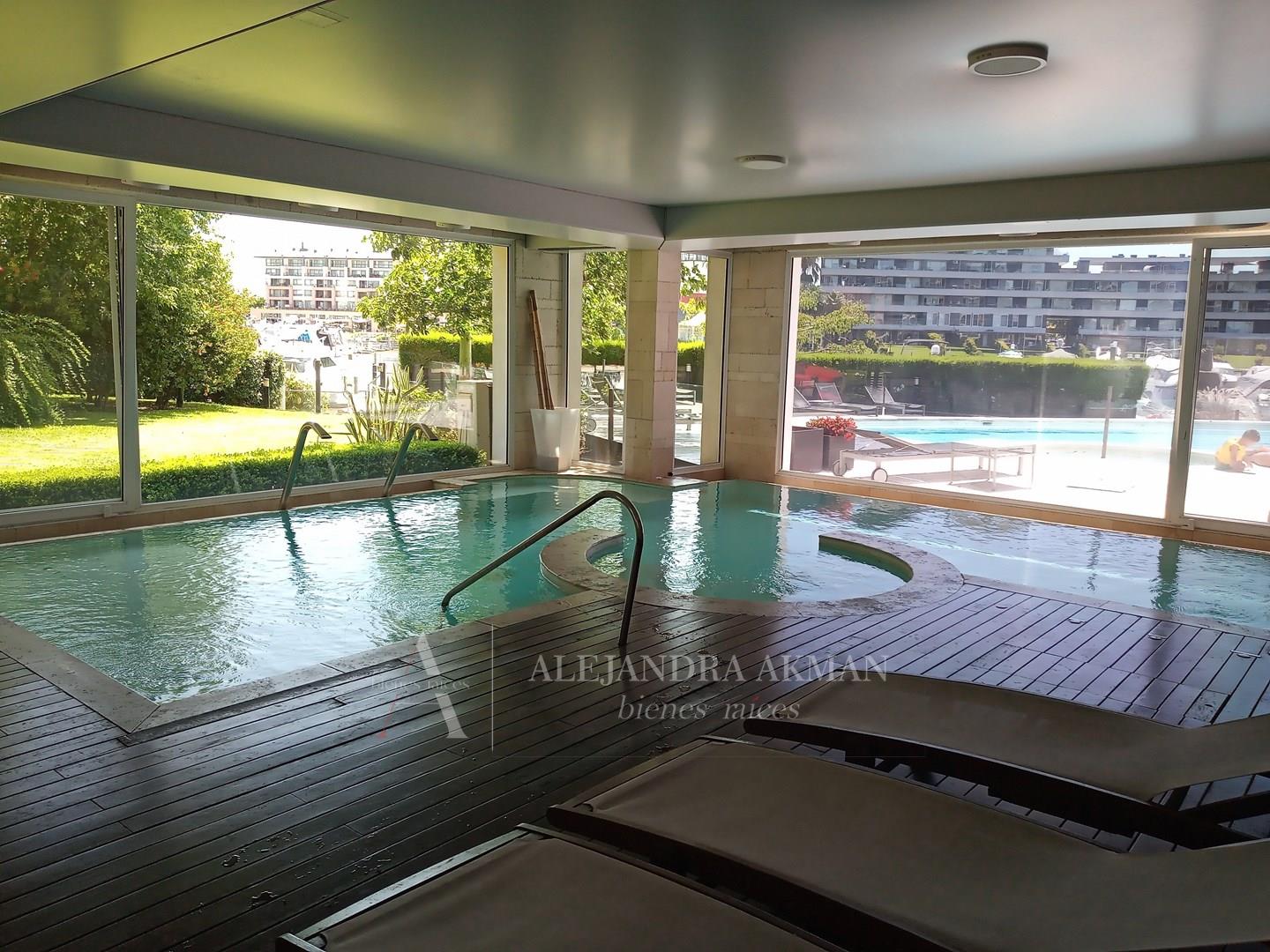 Departamento gran vista al río 3 ambientes en Miradores de la Bahía Nordelta.. Venta con renta hasta 30 de junio 2026 Hall. Toilette. Living – Comedor. Cocina independiente. Dos dormitorios en suite con baño completo . Balcón con parrilla. Cochera fija semicubierta. Consultar posibilidad venta con muebles. Amenities: 2 piscinas, spa, circuito de aguas, sauna gimnasio, sum, restaurant, salón de juegos, seguridad las 24hs. Salida directa a la bahía. 3 laundries. Cocheras de cortesia. Las medidas del inmueble fueron proporcionadas por el propietario. Todas las Operaciones Inmobiliarias son concluidas por Alejandra Akman CMCPSI 7086.